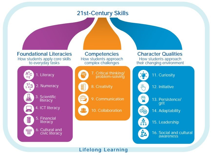 The World Economic Forum published a report in which they defined a set of 16 crucial proficiencies for education in the 21st century. Those skills include: